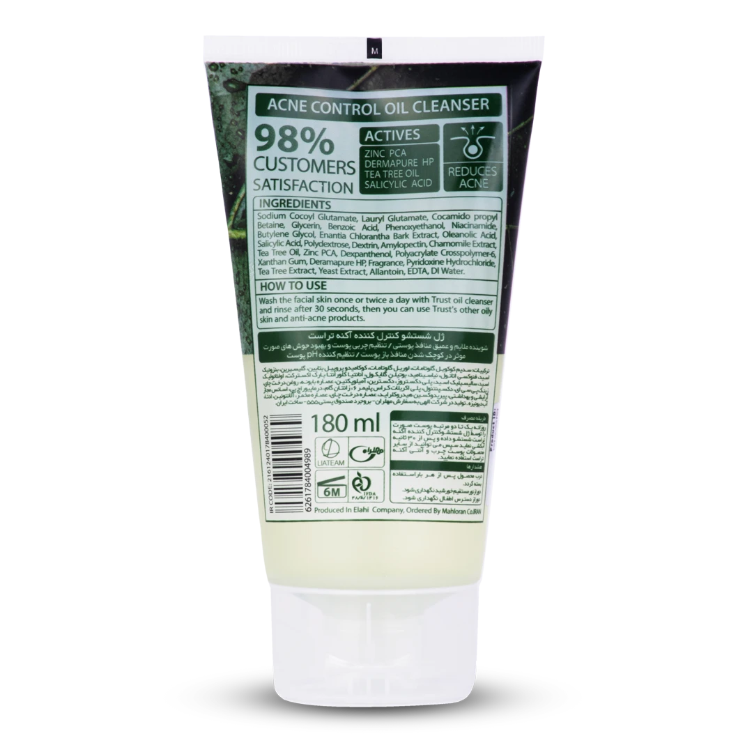 ژل شوینده کنترل کننده آکنه تراست به واسطه ترکیباتی که دارد به پاکسازی منافذ پوست کمک کرده و تولید چربی را در پوست کنترل میکند. عصاره بابونه این ژل جلوی ایجاد التهابهای پوستی را گرفته و با دریافت رادیکالهای آزاد، به بهبود جای جوش و جلوگیری از ایجاد لک هم کمک میکند. این شوینده علاوه بر شستشوی مناسب پوست، با تنظیم مقدار pH آن و کوچک کردن منافذ پوستی، پوستی روشن، نرم و صاف برایتان به ارمغان میآورد.